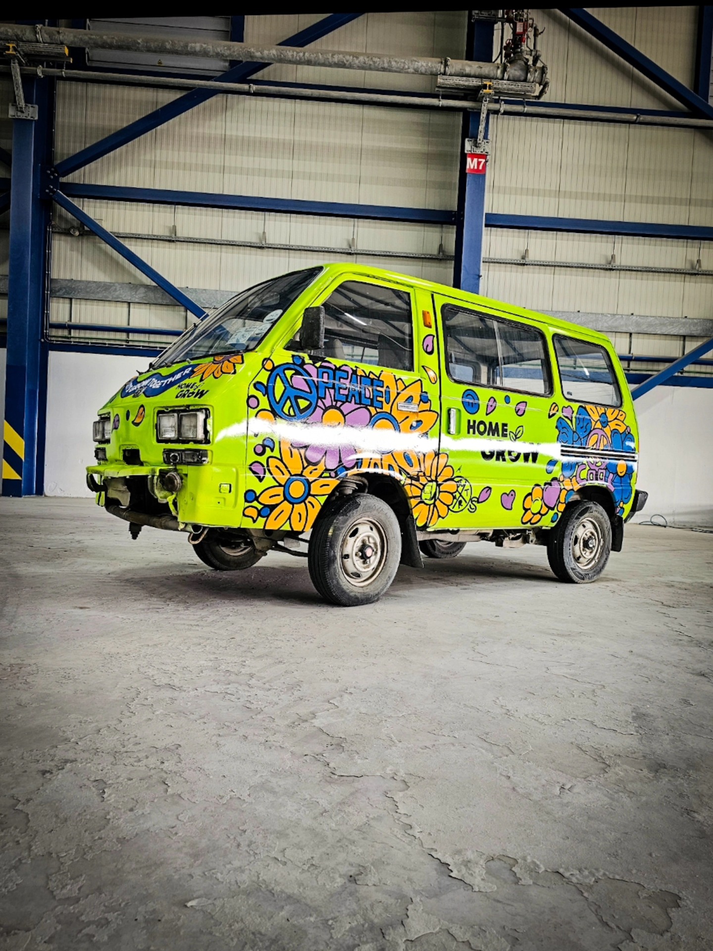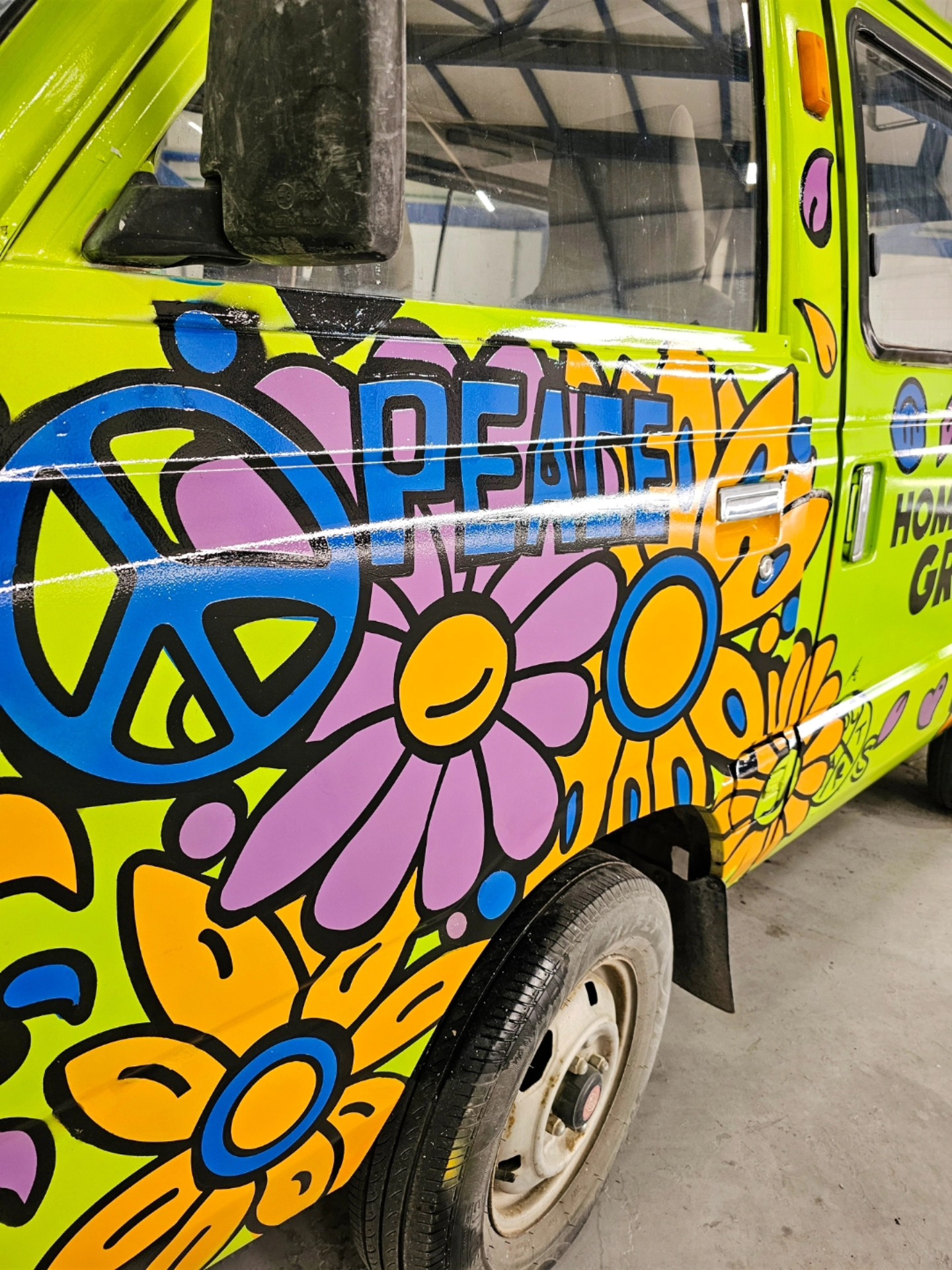 Commissioned by Earth Garden for Home Grown, I was given full creative freedom to completely transform their promo van into a hippie-inspired mobile artwork. The process included sanding, spraying, and hand-drawing every detail to create a bold, colorful design that instantly grabs attention.