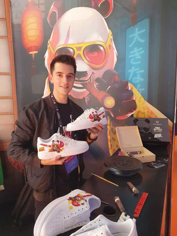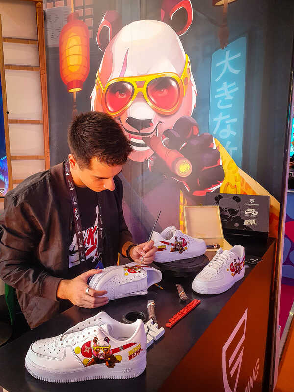 Hand-painted shoes promoting a new game launch.