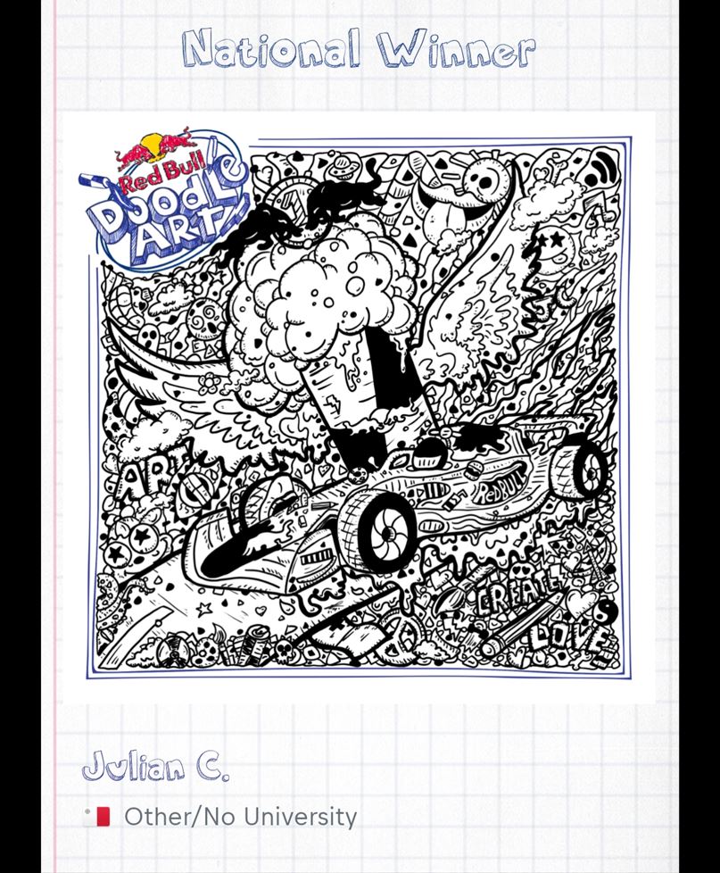 In 2022, I was honored to be selected as the National Winner for Malta in the global Red Bull Doodle Art Competition. Representing Malta, I competed against talented artists from around the world in an international finals event held in Amsterdam, fully sponsored by Red Bull.