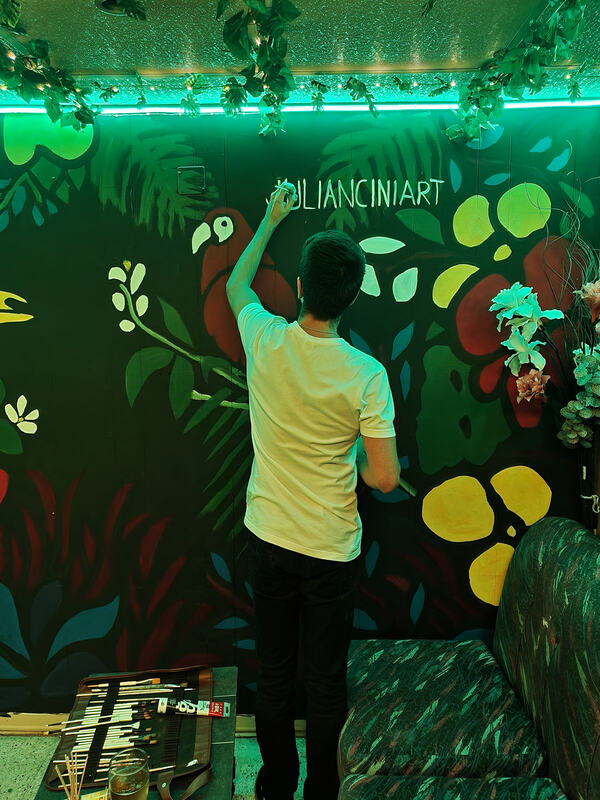 Commissioned in 2020 to renovate the wall of a Maltese pub, I designed and painted a tropical-inspired mural to bring warmth, color, and energy to the space.