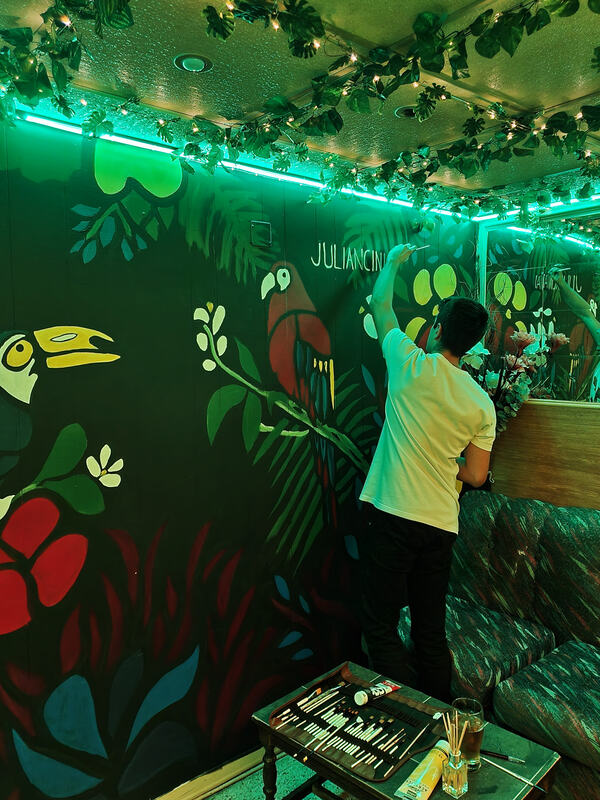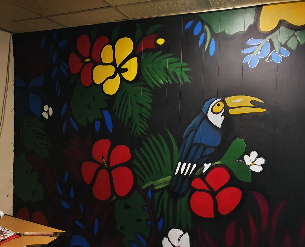 Using acrylic paints, the project was completed over four days, turning the venue into a lively and inviting environment for its visitors.