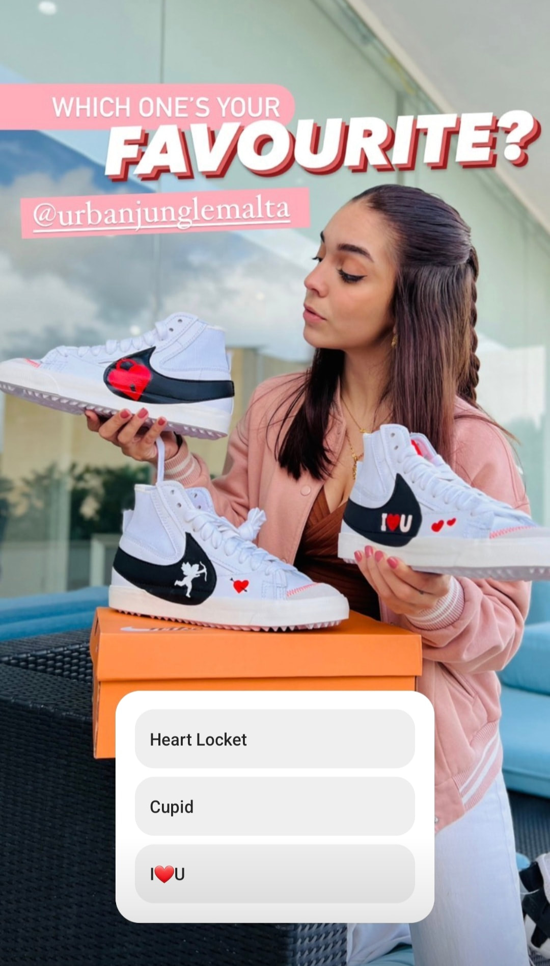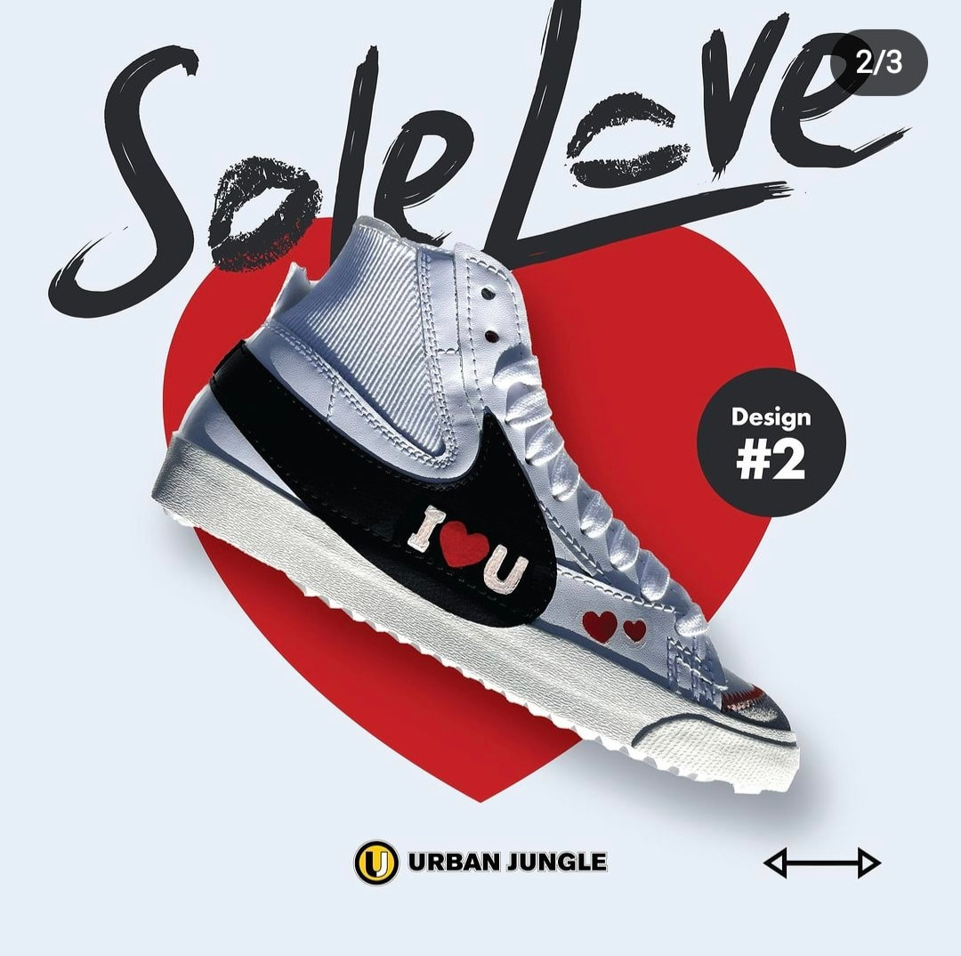 In 2023, I collaborated with Urban Jungle for a special Valentine’s Day campaign, designing three unique custom shoe designs on Nike Jumbo 77s. Each pair was hand-painted to capture the spirit of love and individuality, giving clients across Malta and Gozo a truly one-of-a-kind Valentine’s gift.